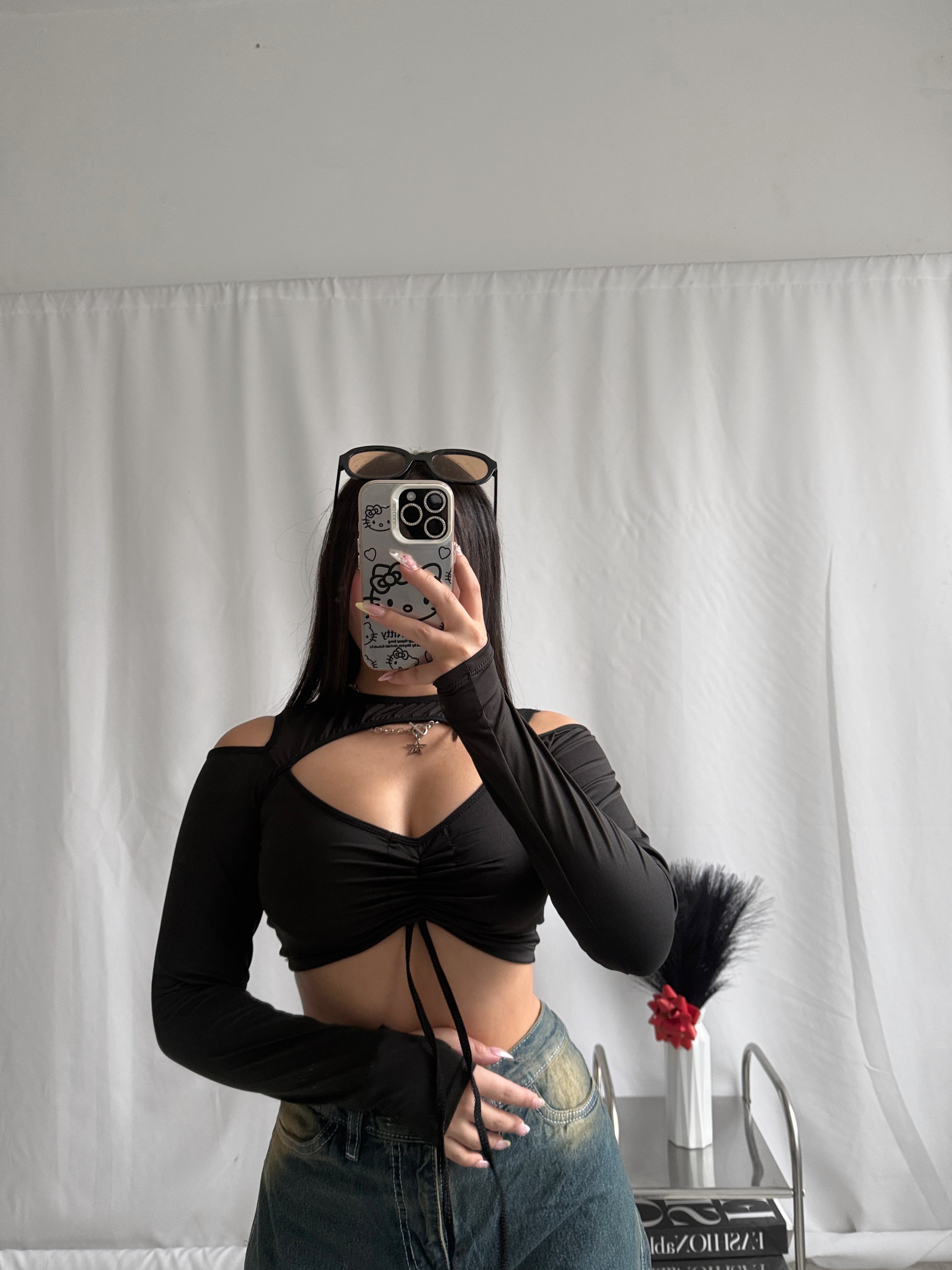 Top manga larga tipo guante con ajuste